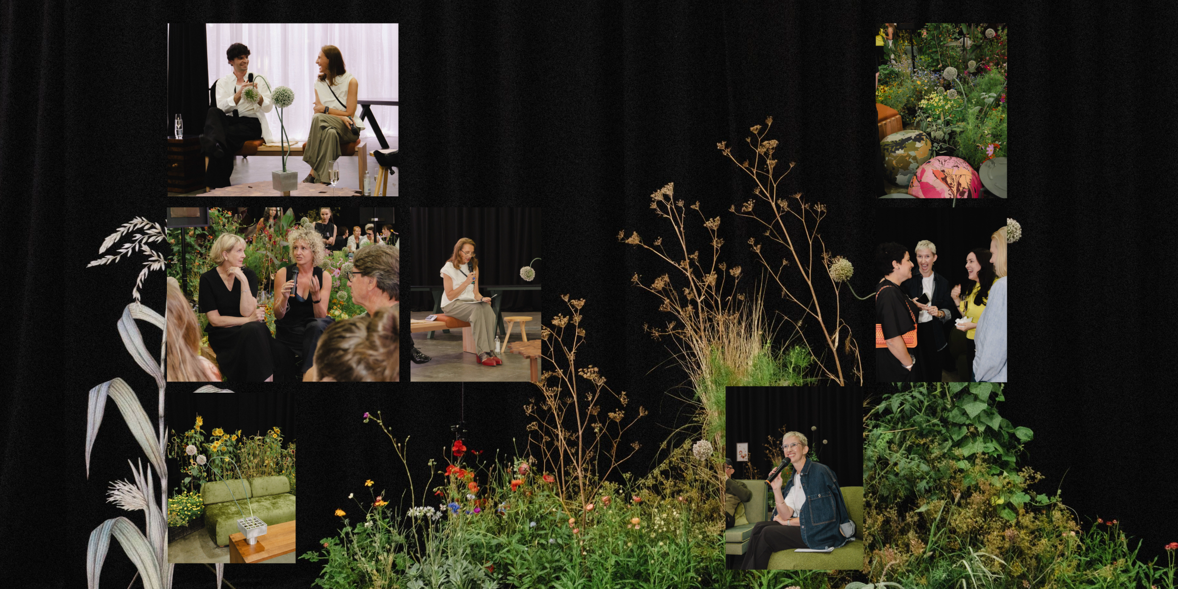 Our event took place within the enchanting surrounds of the VIP Lounge, designed and presented by Broached Commissions for the 2026 MAF. Attendees were invited to step away from the thrum of the MAF stands, and venture into the lounge, where fields of flowers and foliage lent a cooling, refuge-like quality to the secluded space. Within, Broached Commissions had created a living archive of women artists. Among those works on show were living floral installations by Hattie Molloy, and sculptural furniture pieces by Australian designer Helen Kontouris, custom upholstered and supplied by KFive.